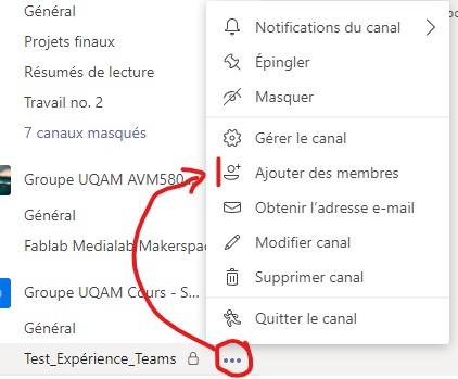 Il suffit de repérer le canal où vous désirez ajouter des personnes, cliquer sur les … (Autres options) qui s’affichant à droite du nom du canal et choisir l’option ajouter des membres.