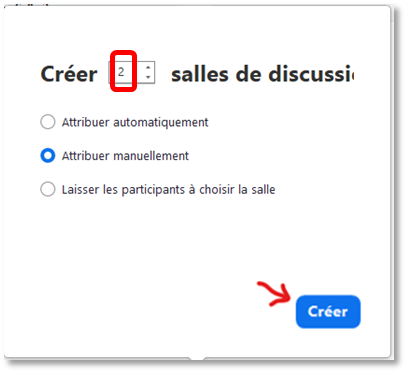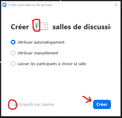 La première option Attribuer automatiquement, permet de créer le nombre de salles de discussion que vous désirez.